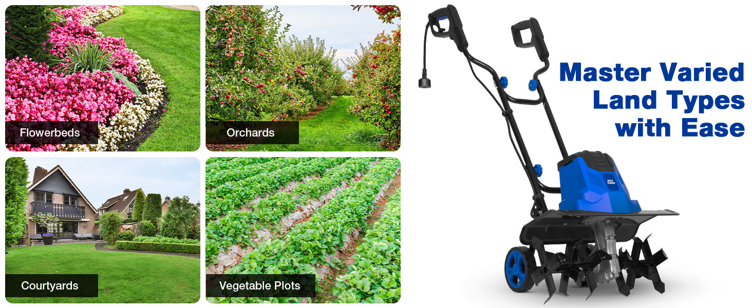 Your Go-To Garden Companion: Whether you're loosening soil, mixing compost, or removing weeds, this electric garden tiller is the ideal tool for maintaining healthy soil in your yard, garden, or flower beds.