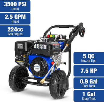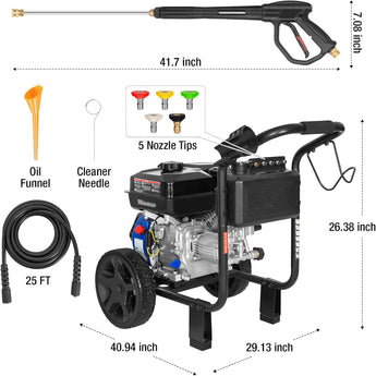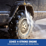 - Reliable Performance - Easy to start with 7.5HP 224cc 4-stroke single-cylinder OHV engine that generate 9.96ft-lbs torque, this pressure washer is specialize in deck cleaning, wood restoration, paint preparation, and all other professional services.