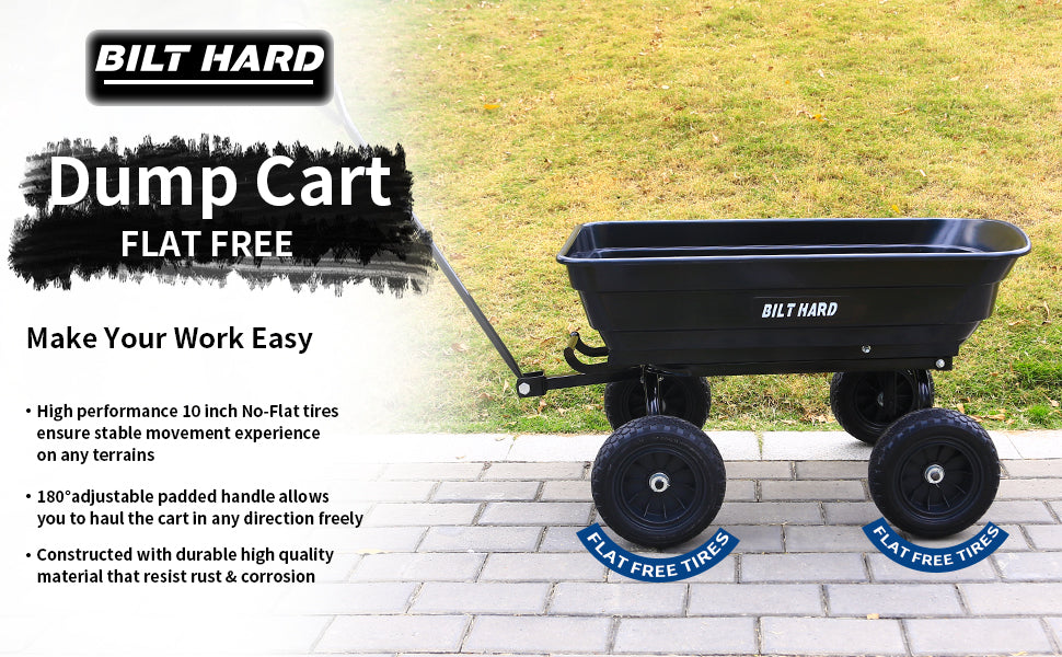 BILT HARD 4 Cu.Ft. 10" No-Flat Tires Poly Yard Dump Cart with 180° Rotating Handle, 600 lbs Capacity Heavy Duty Garden Carts and Wagons