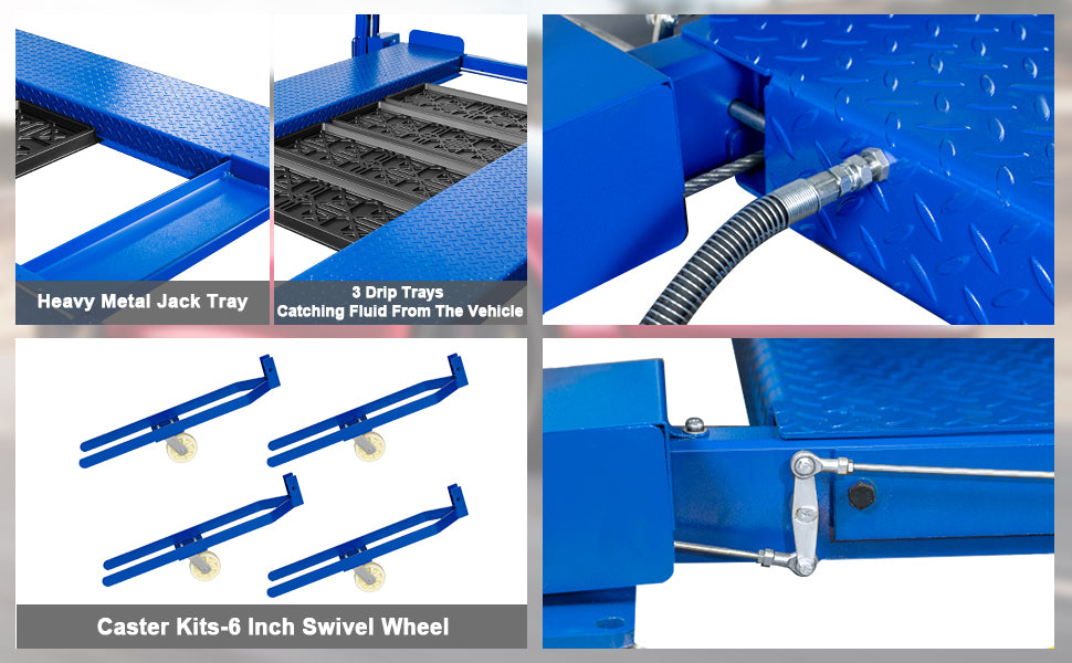🔸Convenient Accessories Included: Comes with a 6" Free Caster Kit, Jack Tray, 3 Drip Trays, 2 Removable Approach Ramps, and a Power Cord for added convenience and functionality.