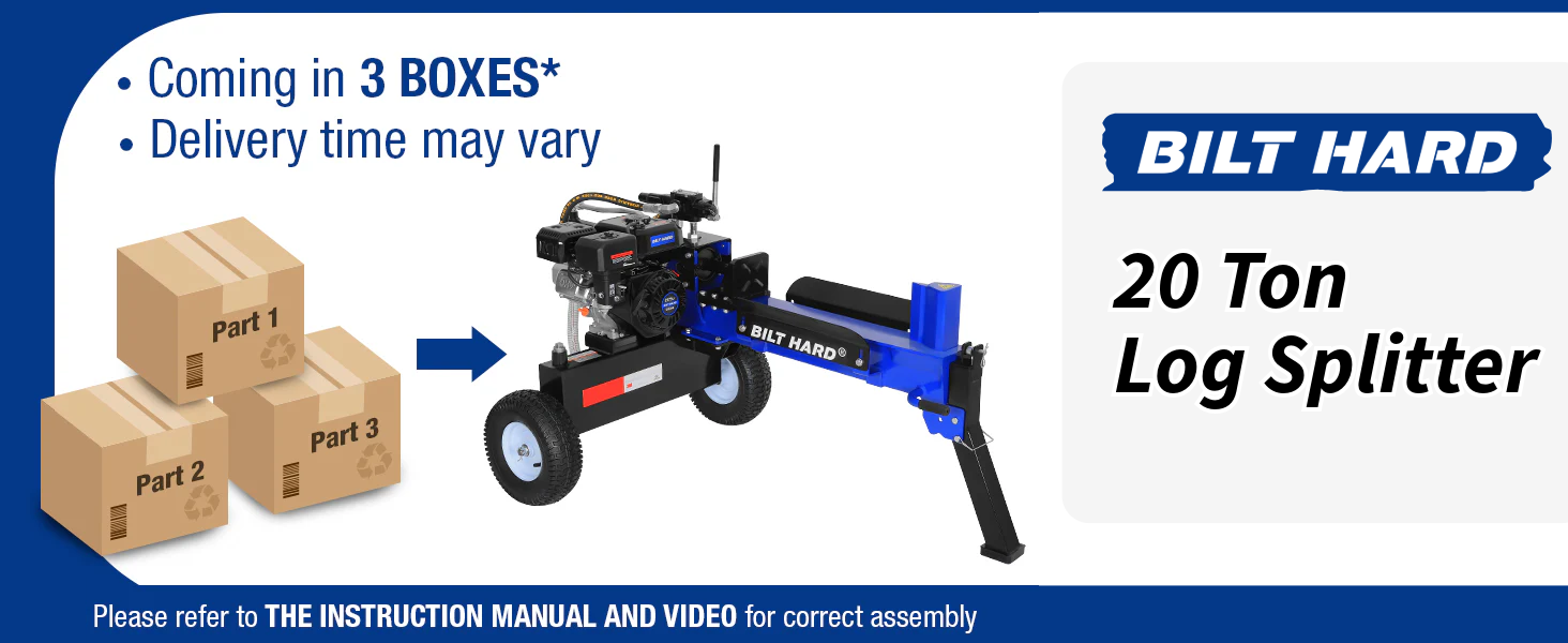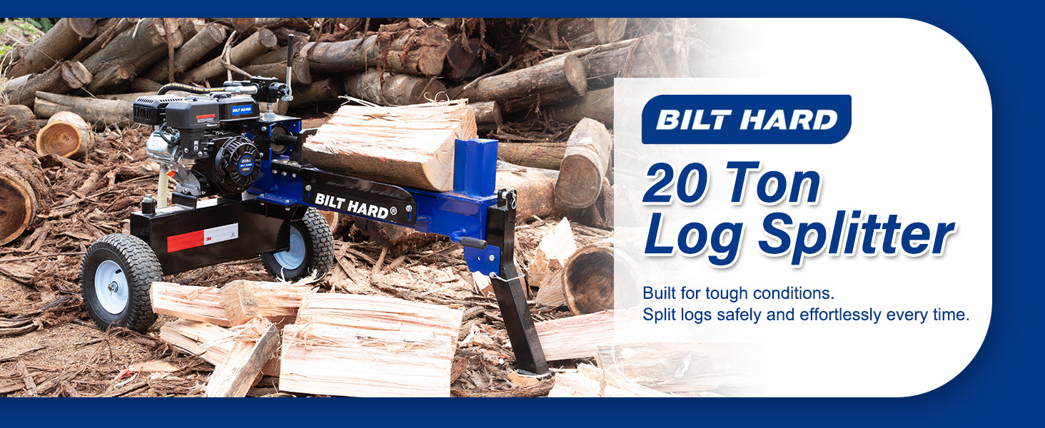This gas-powered log splitter delivers an impressive 20 tons of splitting force, powered by a 7 HP 209cc single-cylinder OHV engine that produces 12.4 ft.-lb. of torque. This strong performance enables you to split logs quickly and efficiently.