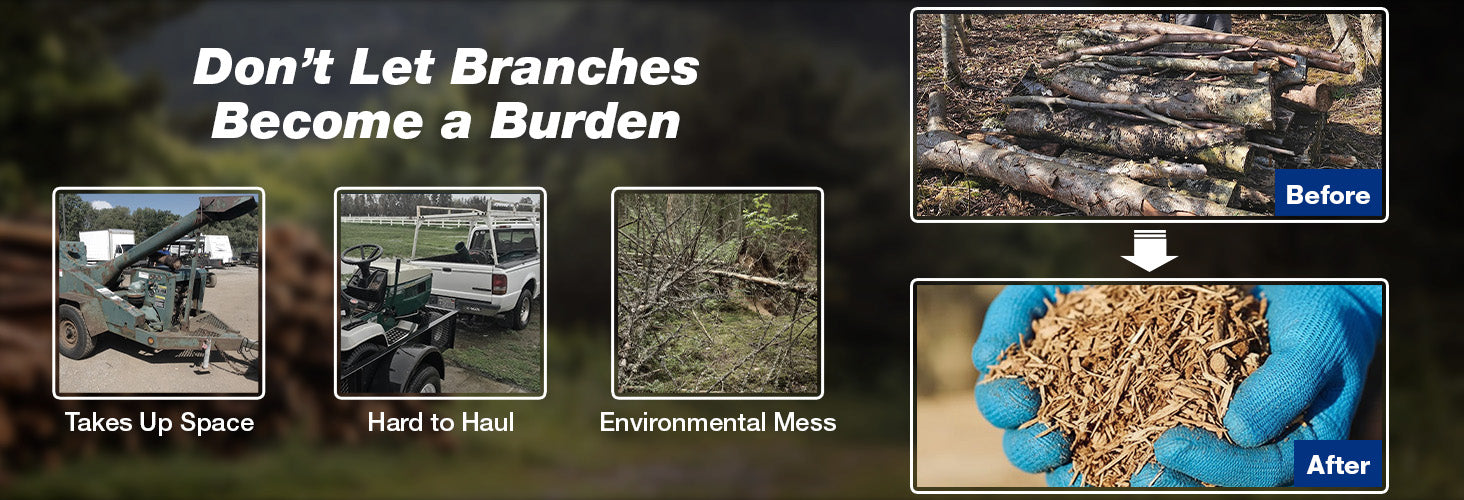 • Maintenance is quick and simple—both the feeding chute and discharge chute open easily for servicing, blade access, or cleaning. The 56-inch tall discharge chute rotates a full 360 degrees, allowing you to direct chips exactly where you want them, whether into a trailer, pile, or onto the ground.