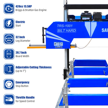 BILT HARD 32" Portable Sawmill with 13.5HP Briggs & Stratton 420cc E-Start Gas Engine