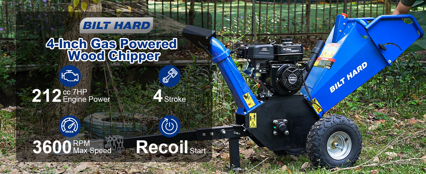 4-Inch Drum Wood Chipper 7HP 212cc Ducar Gas Powered
