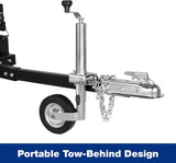 - Effortless Mobility & Convenience: Equipped with a reversible 2″ coupler hitch for easy towing behind a lawn tractor or ATV, and large 15.75″ wheels for smooth traversal over varied terrain. A 360° rotatable discharge chute with adjustable deflector improves debris control and loading coordination.