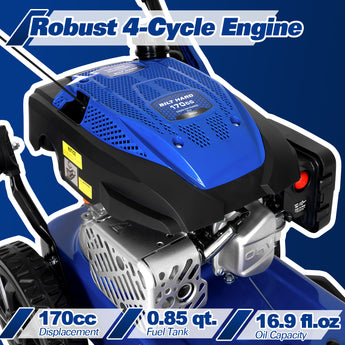 Adjustable Cutting Height & Side Discharge — Get the perfect cut every time. Choose from 8 height settings (1.6–3.7 inches) to suit different grass conditions. The side discharge spreads clippings evenly, leaving your yard looking neat and clean.