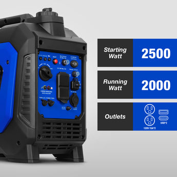 Powerful Yet Compact (2500W/2000W): Delivers 2500 starting watts and 2000 running watts—perfect for camping, tailgating, or as a home backup. Provides stable power for your essentials without risking damage to electronics.