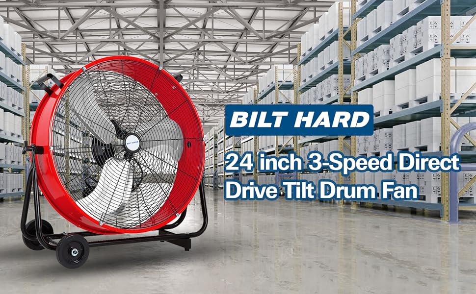 BILT HARD 24" 8100 CFM High-Velocity Drum Fan: 3-Speed Heavy-Duty Metal Fan, UL Listed