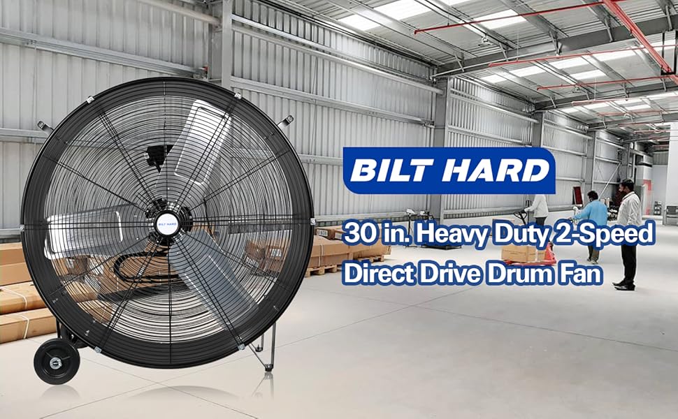 BILT HARD 30" 13000 CFM High Velocity Drum Fan: 2-Speed Heavy Duty Industrial Fan, UL Listed