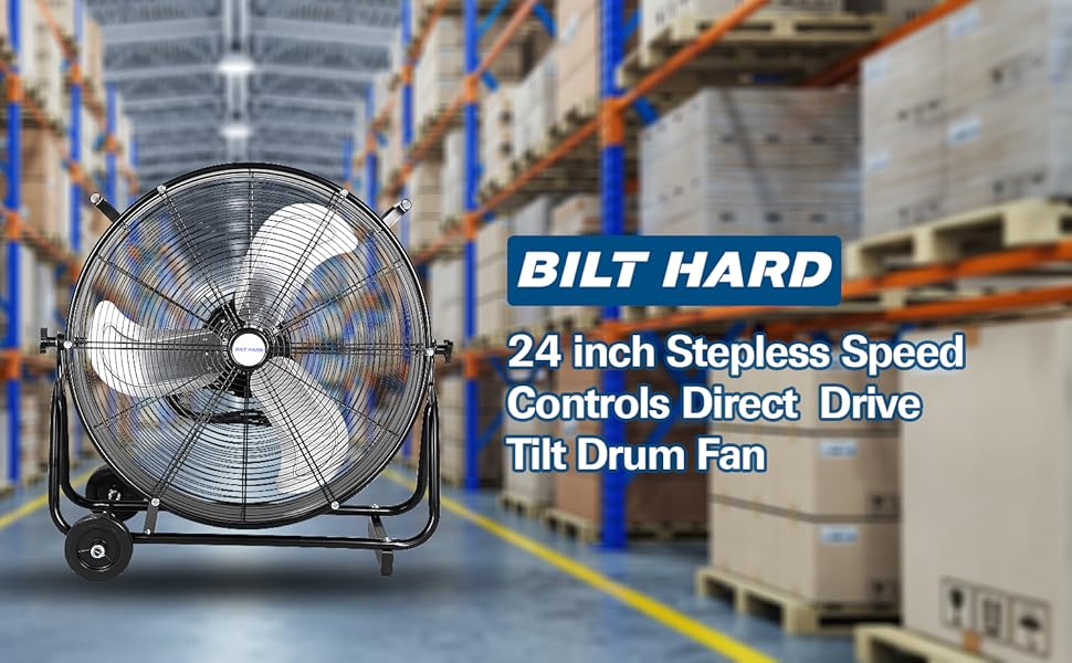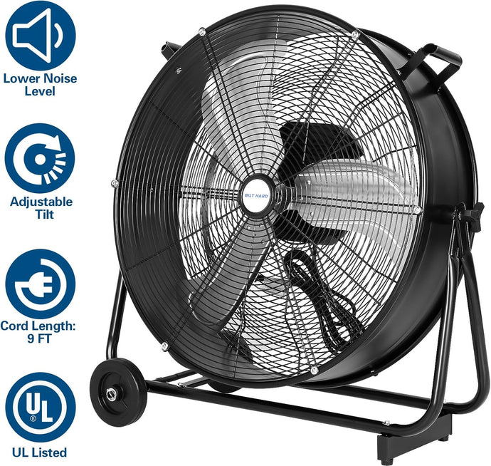 BILT HARD 24" Ultra Quiet Variable Speed Drum Fan: 7800 CFM, DC Motor, Heavy Duty Industrial Shop Fan, UL Listed