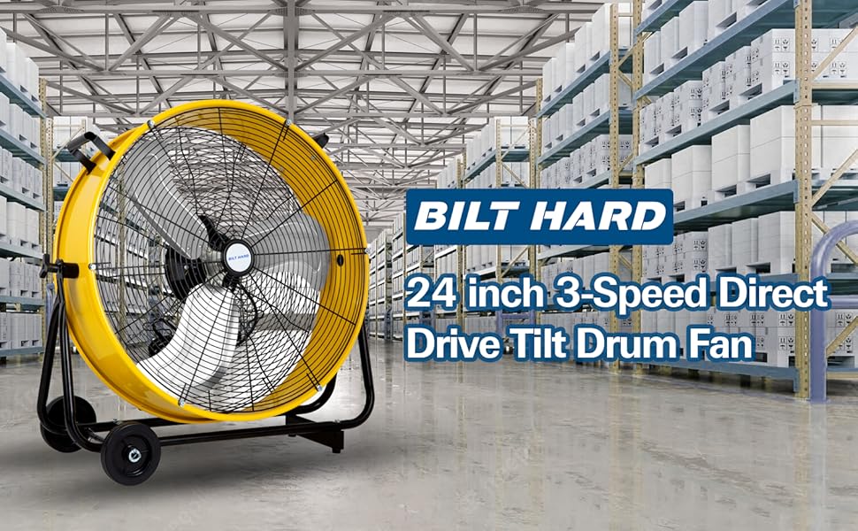 BILT HARD 24" 8100 CFM High Velocity Drum Fan: 3-Speed Heavy Duty Metal Shop Fan, UL Listed