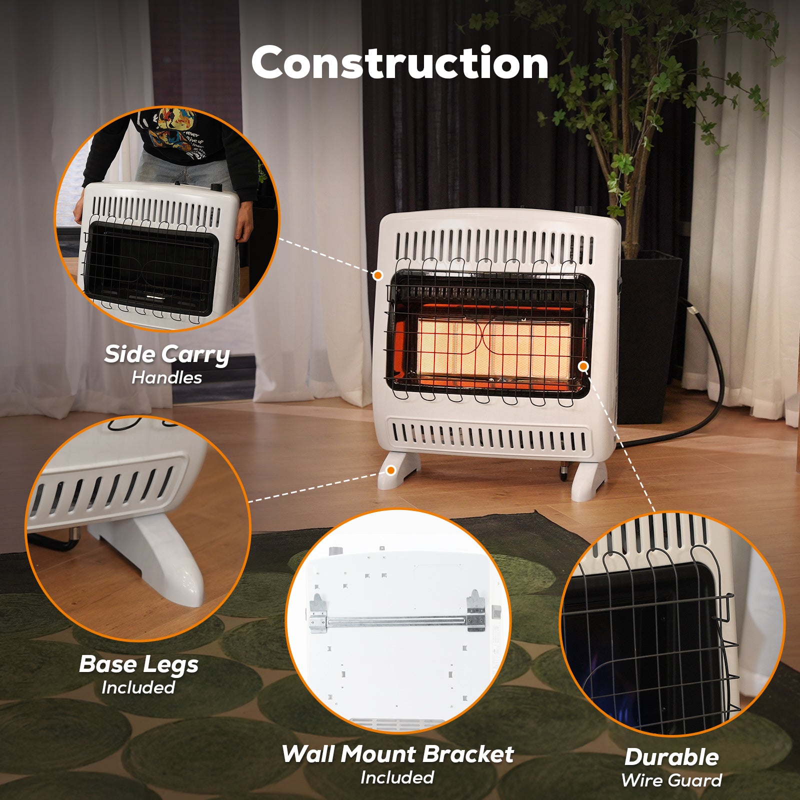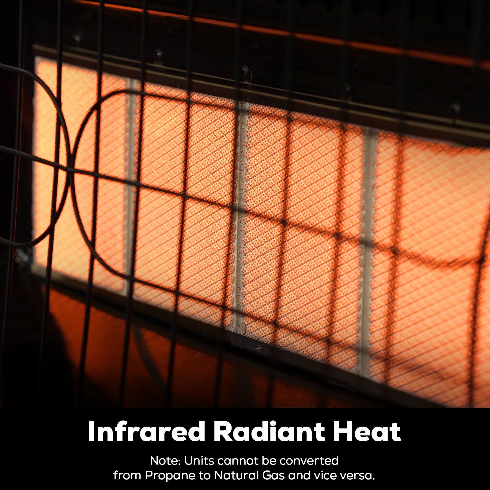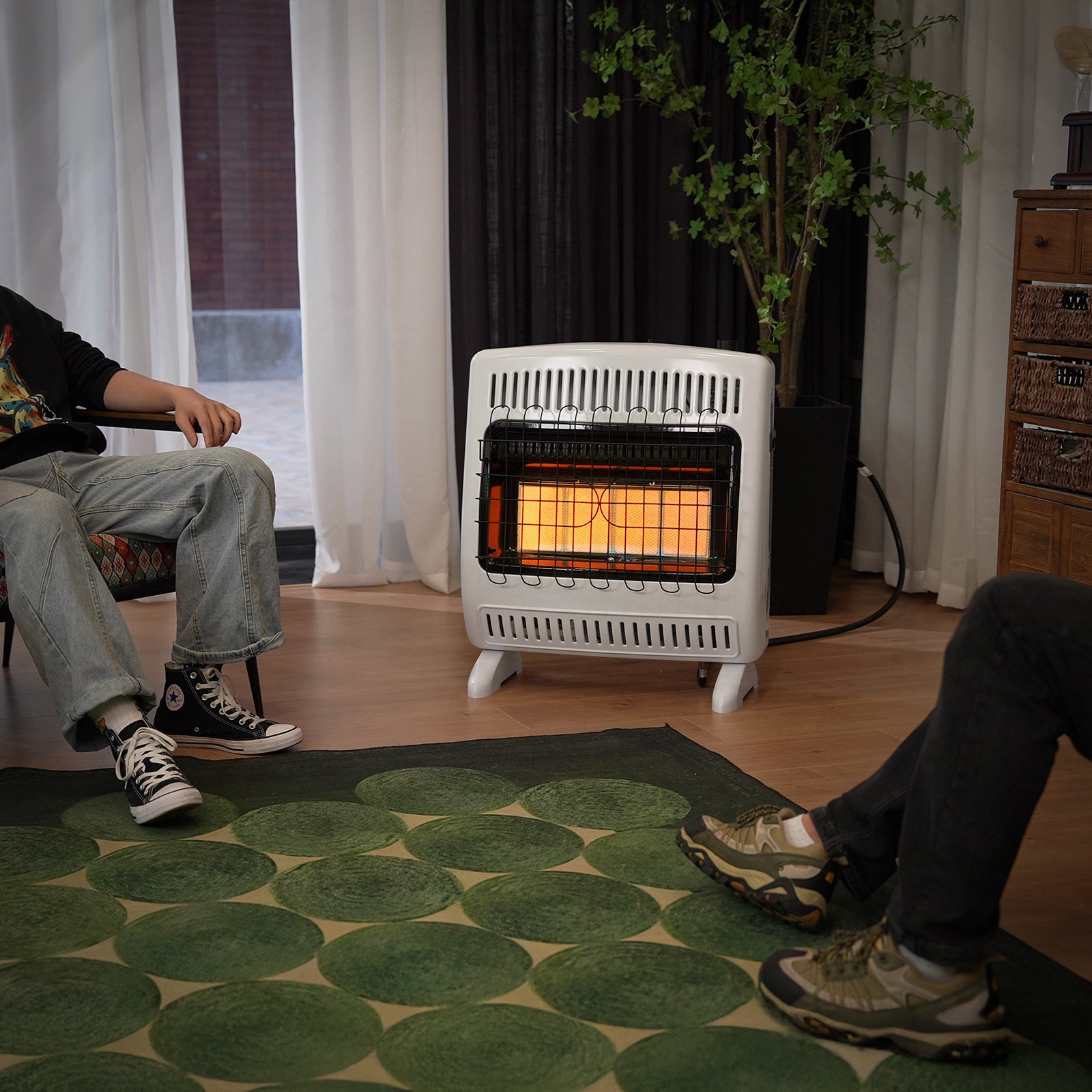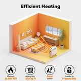 High-quality ceramic plaques emit gentle, sun-like radiant heat that spreads comfortably throughout the room. Designed for indoor use, it works as both a natural propane wall heater and a versatile space heater.