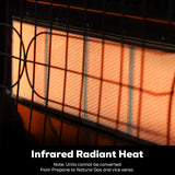 Using propane fuel, this indoor wall-mounted heater delivers 28,000 BTUs of radiant heat, efficiently warming spaces up to 1,300 sq. ft. Its strong output makes it ideal for homes, offices, and garages.