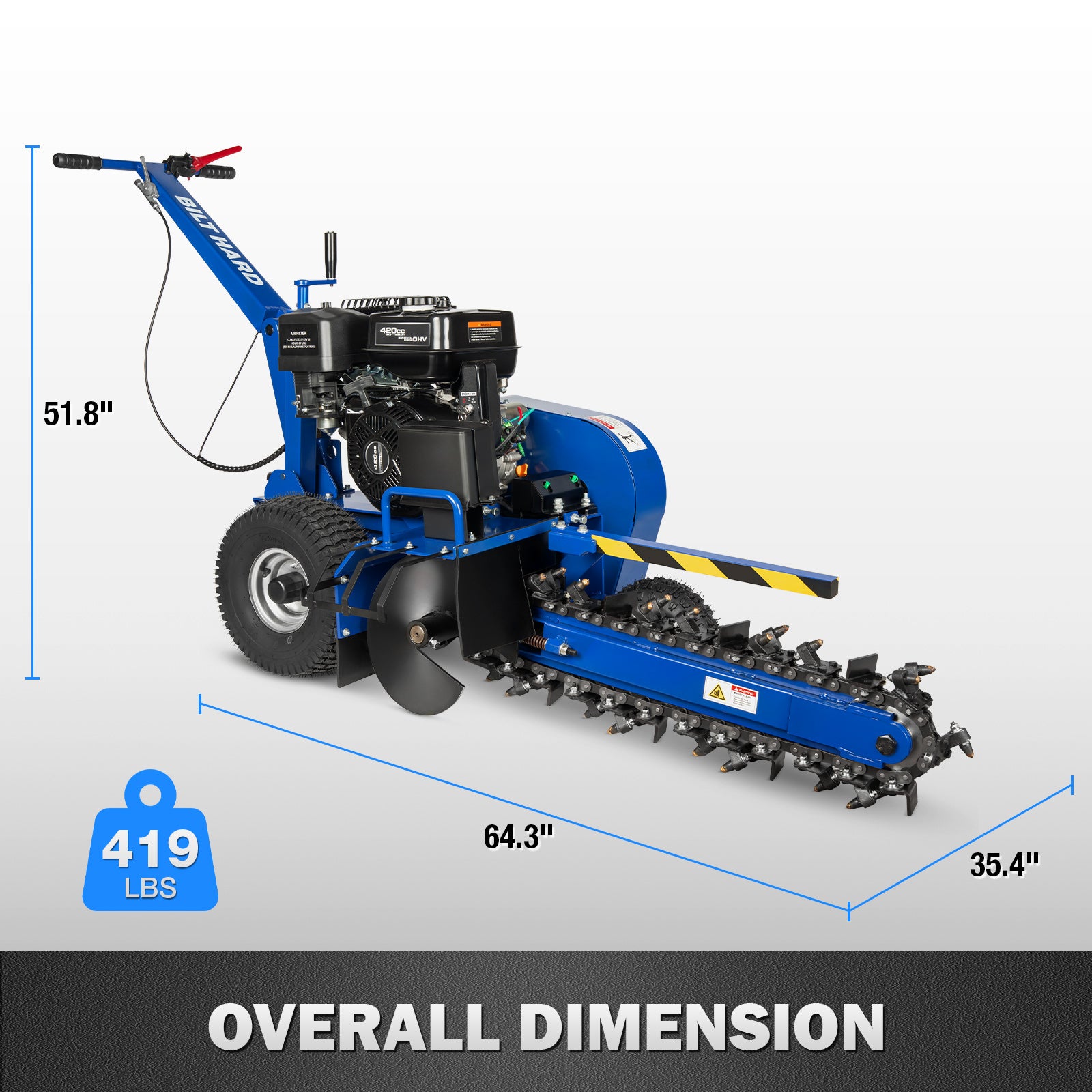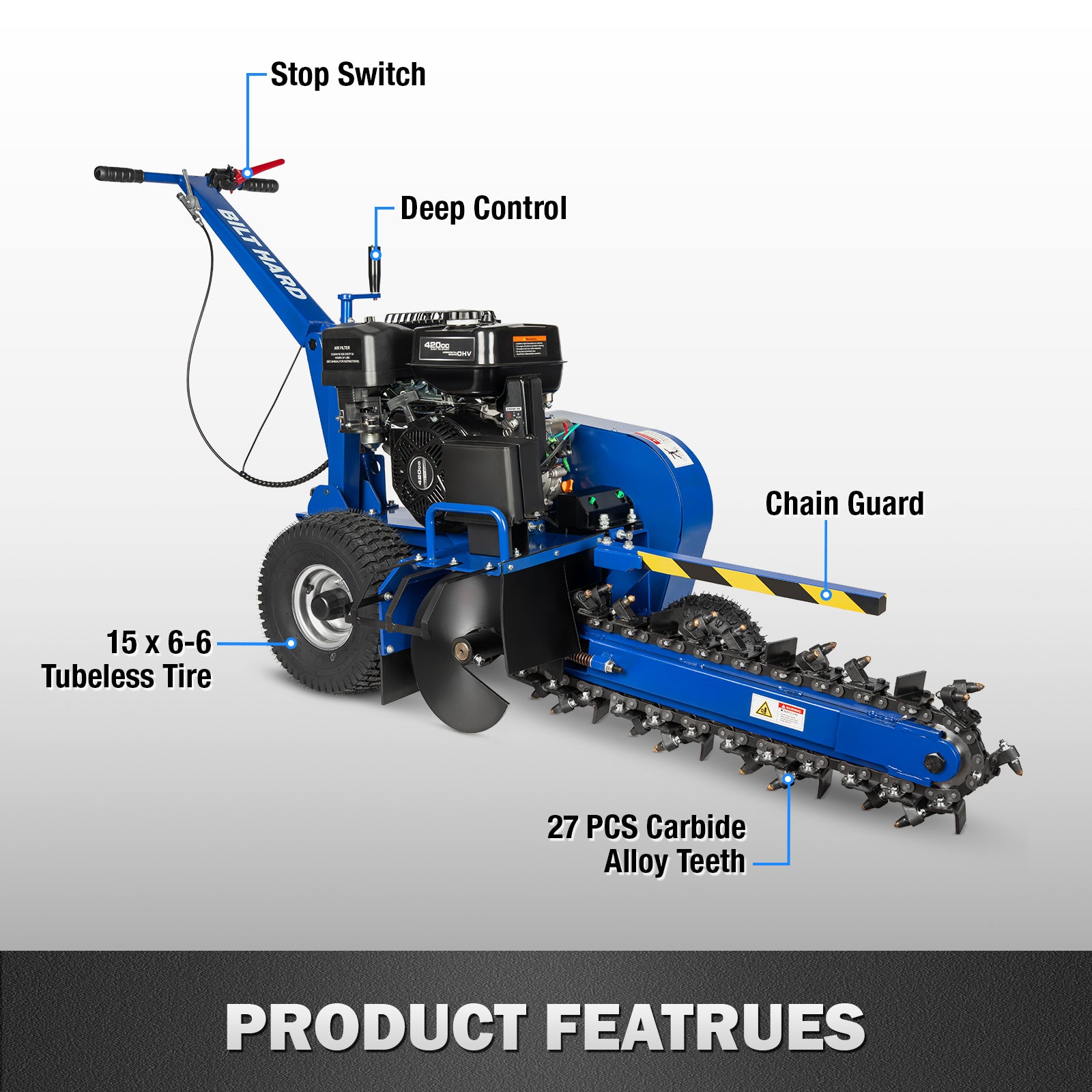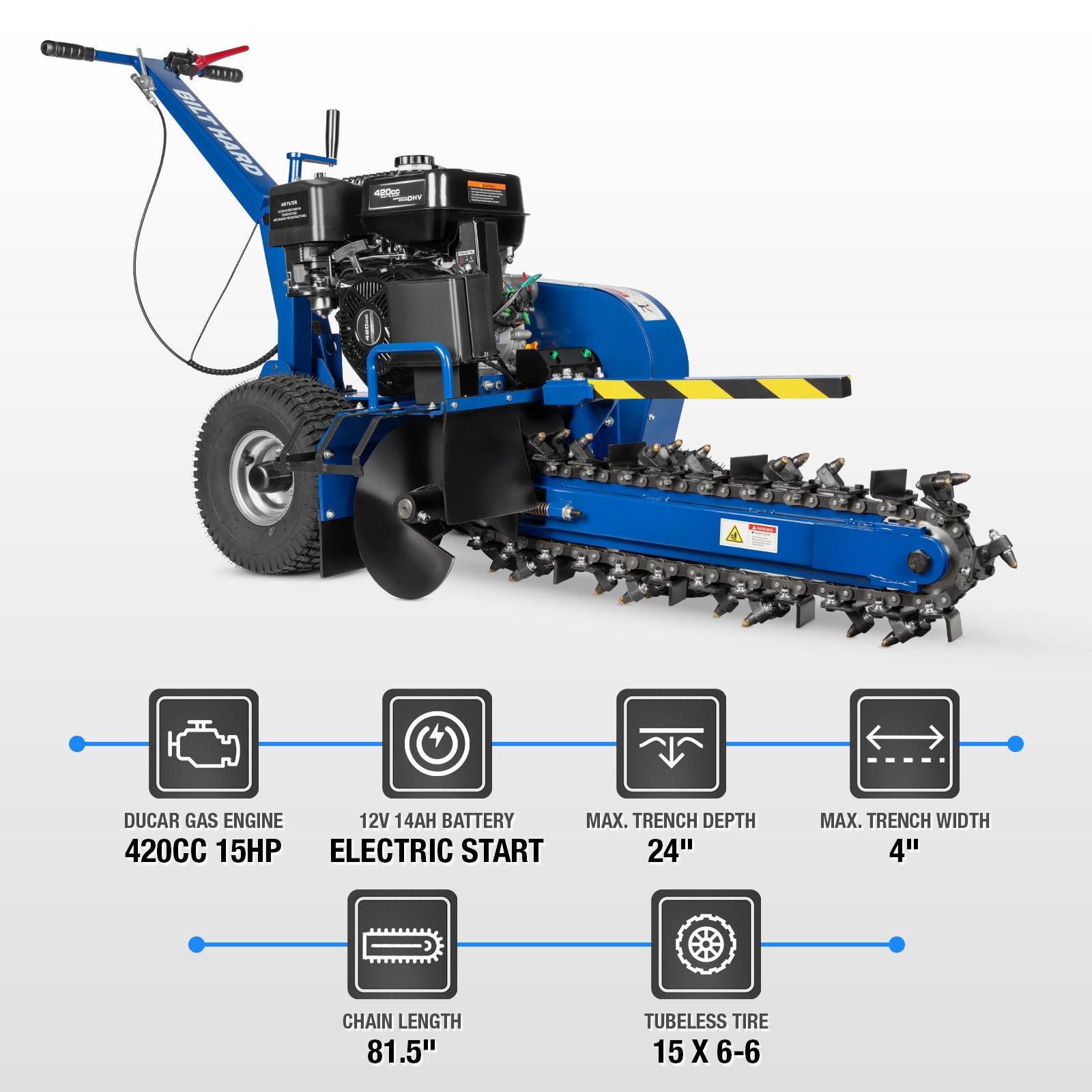 • When your project demands reliable, professional-grade trenching capabilities, the BILT HARD Trencher delivers the performance you need to get the job done right. Whether you're a landscaping professional, utility contractor, or dedicated DIY enthusiast, this powerhouse machine is engineered to tackle the most challenging excavation tasks with exceptional efficiency and control.