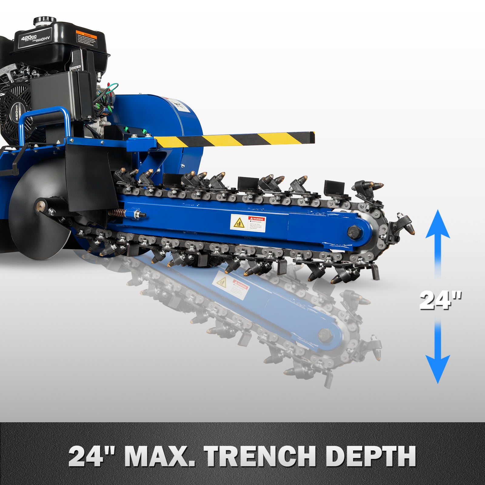 • Achieve pinpoint accuracy with our adjustable depth system that reaches up to 24 inches deep. The innovative threaded lifting lever mechanism puts complete depth control at your fingertips, allowing you to dial in the exact trench depth your project requires. From shallow irrigation lines to deep utility installations, adjust on the fly without complex tools or time-consuming setups.