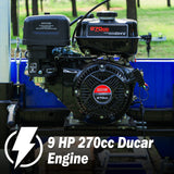 This sawmill comes equipped with a powerful 9HP 270cc Ducar engine, giving you the performance and reliability you need to get the job done right. Itâs built to last and ready to tackle even your toughest cutting projects.