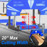 Easily adjust the cutting width based on your log sizeâthis sawmill offers a maximum cutting width of 20 inches, giving you the versatility to cut boards just the way you need them.