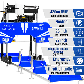 BILT HARD 26" Portable Sawmill with 15HP Ducar 420cc E-Start Gas Engine