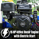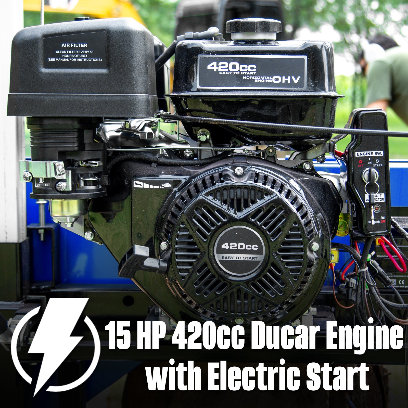 đ¸ăPowerful PerformanceăEquipped with a reliable DucarÂŽ 420cc 15HP 4-stroke OHV gasoline engine with electric start, this sawmill is built to tackle heavy-duty jobs. Perfect for long hours and tough conditionsâeven in remote locations.
