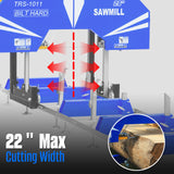 đ¸ăLarge Cutting CapacityăHandles logs up to 26" in diameter and 124" in length. With a 31" track width and a total track length of 157", it can cut boards up to 22" wide and 7" thickâturning raw logs into high-quality slabs with ease.