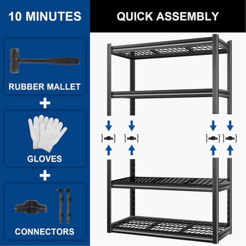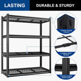 Unmatched Load Capacity – Each tier supports up to 700 lbs (evenly distributed), with a total capacity of 2,800 lbs, making it perfect for storing heavy tools, bins, and gear in your garage, basement, workshop, or warehouse.