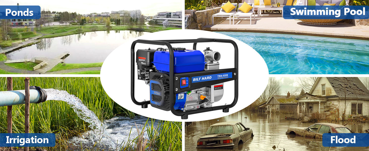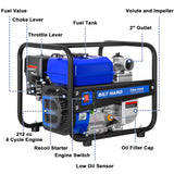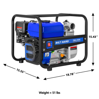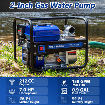 BILT HARD Semi Trash Pump 2 inch, 158 GPM 7HP Gas Powered Water Pump, 212cc 4-Cycle Engine with 50 ft Discharge Hose, 12 ft Suction Hose and Complete Fittings, EPA Certified