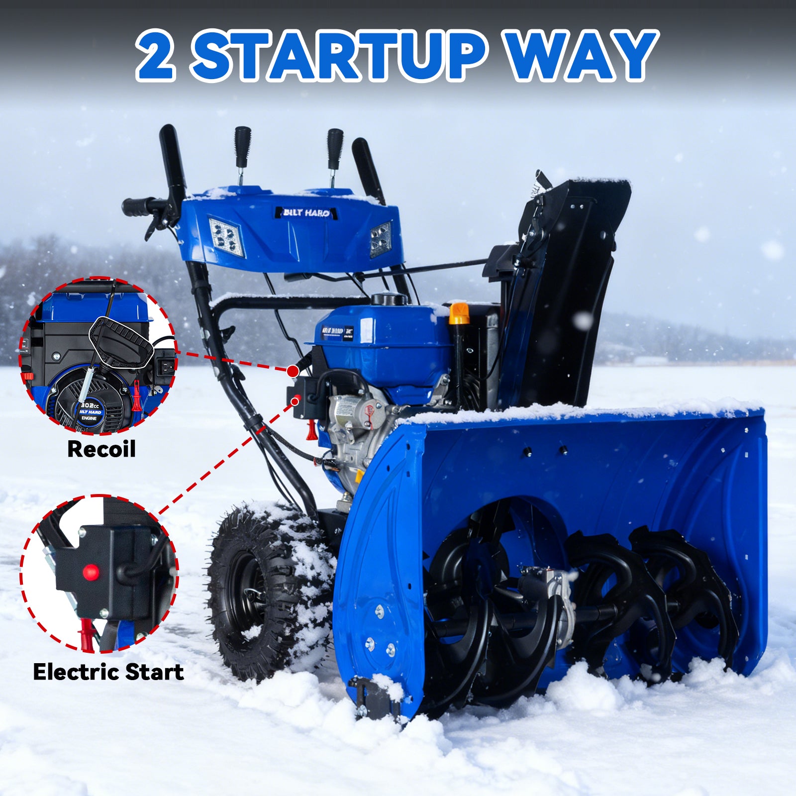 28 Inch Snow Blower 2 Stage, 302cc 4 Stroke Engine Gas Powered Snowblower with Corded Electric Start, Steering Control and LED Light, Self Propelled Snow Removal Equipment