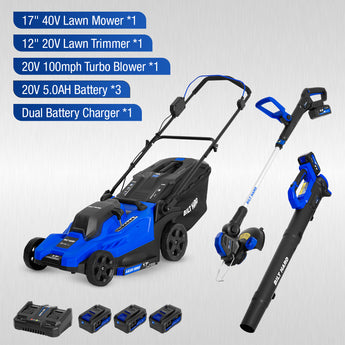 - 17" 40V Brushless Lawn Mower: Effortlessly cuts through your yard with a brushless motor for longer runtime and more power.