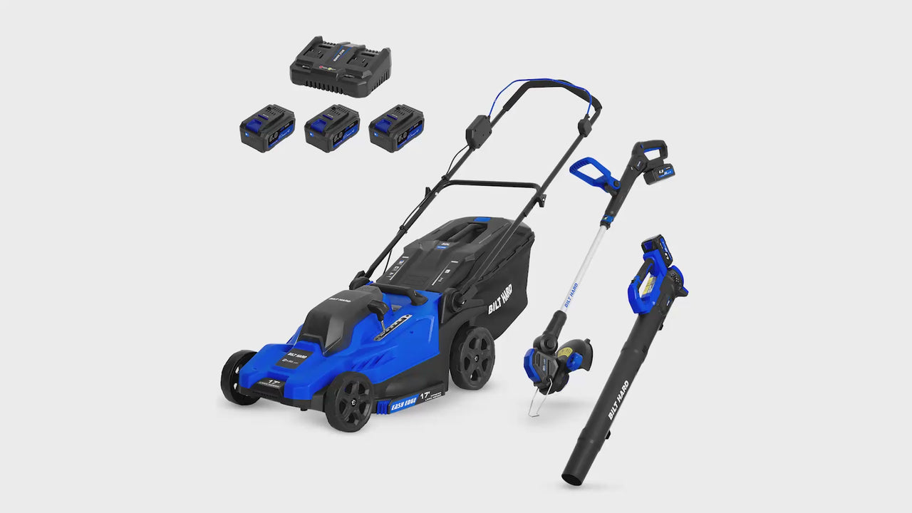 This Cordless Lawn Mower, String Trimmer & Leaf Blower Combo Set is the ultimate solution for a well-maintained yard, combining powerful tools for every task.