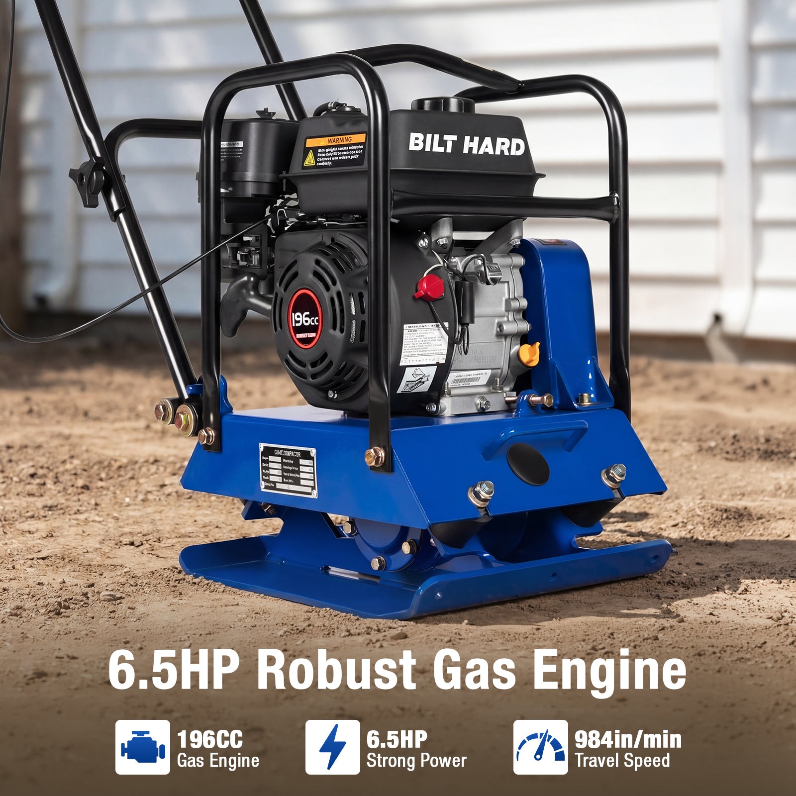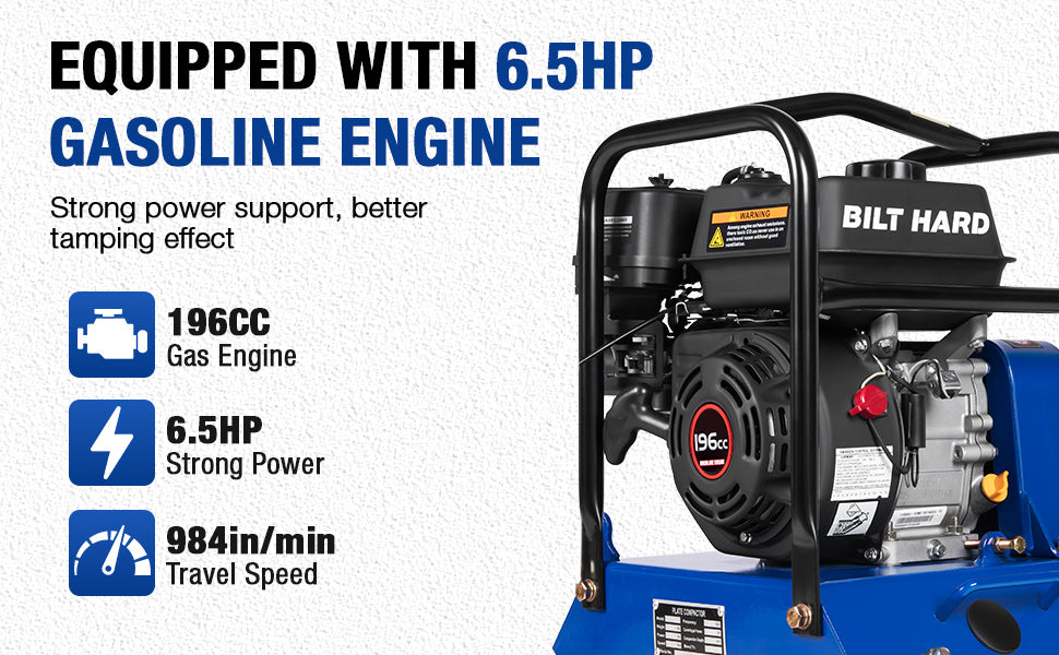 Powered by a 196cc 6.5HP 4-stroke engine, producing 4.8kW at up to 3600 RPM, this machine delivers consistent high-impact vibration for demanding applications. Designed for contractors and serious DIY users who need dependable, job-ready performance.