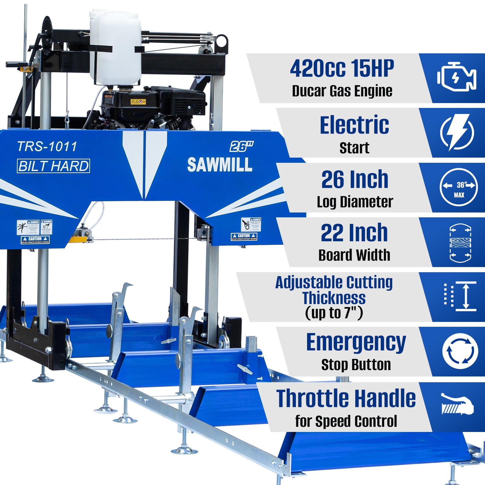 BILT HARD 26" Portable Sawmill with 15HP Ducar 420cc E-Start Gas Engine