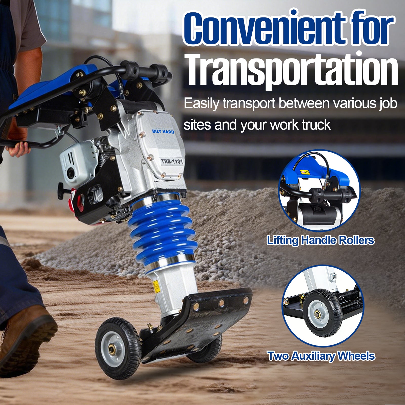 Transporting heavy equipment shouldn’t slow you down. This rammer includes: