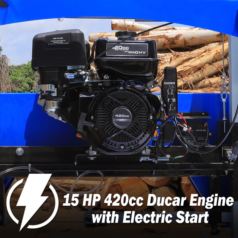This sawmill comes equipped with a powerful 15HP 420cc Ducar engine, giving you the performance and reliability you need to get the job done right. It’s built to last and ready to tackle even your toughest cutting projects.
