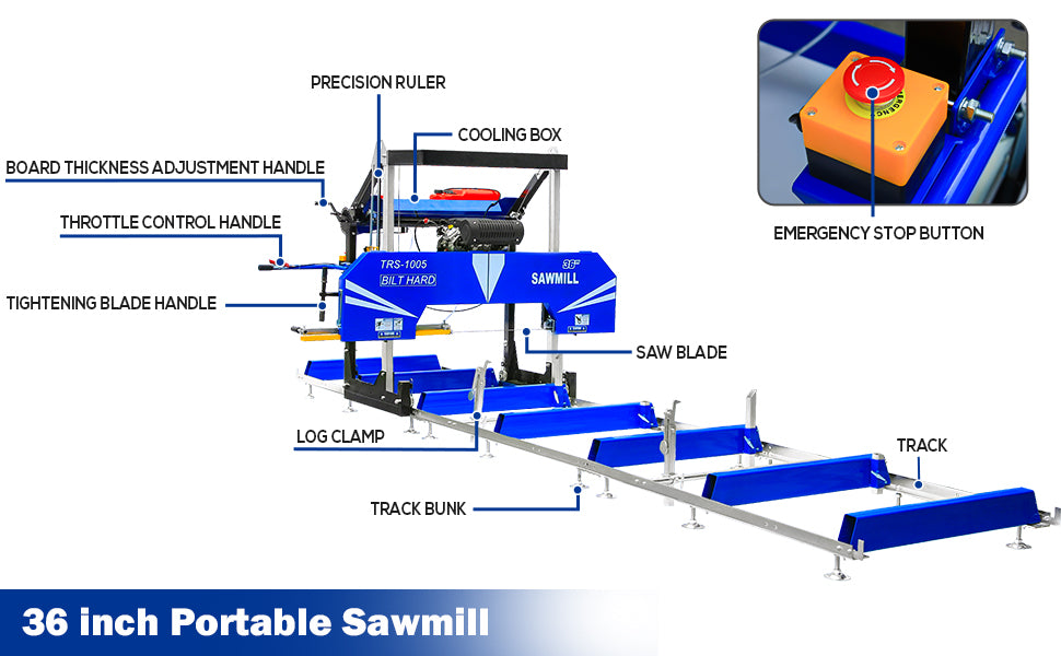 BILT HARD 36" Portable Sawmill with 25HP Ducar 760cc E-Start Gas Engine