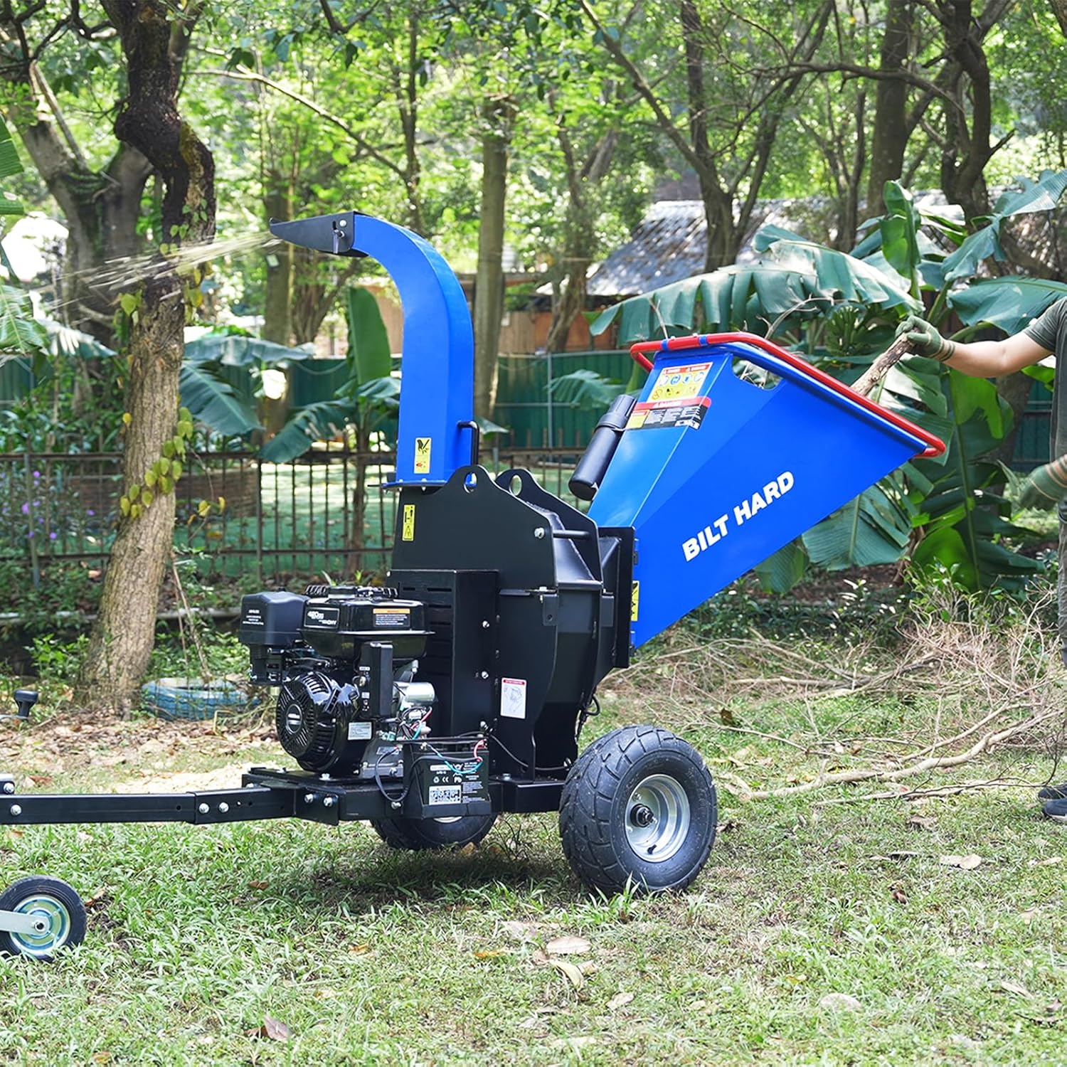- Powerful 4-cycle 420cc Gas Engine: The BILT HARD 5″ towable wood chipper is equipped with a robust 15HP 420cc gasoline engine featuring electric start. Supported by a reliable 12V 20Ah lead-acid battery, it ensures quick and effortless startups every time.