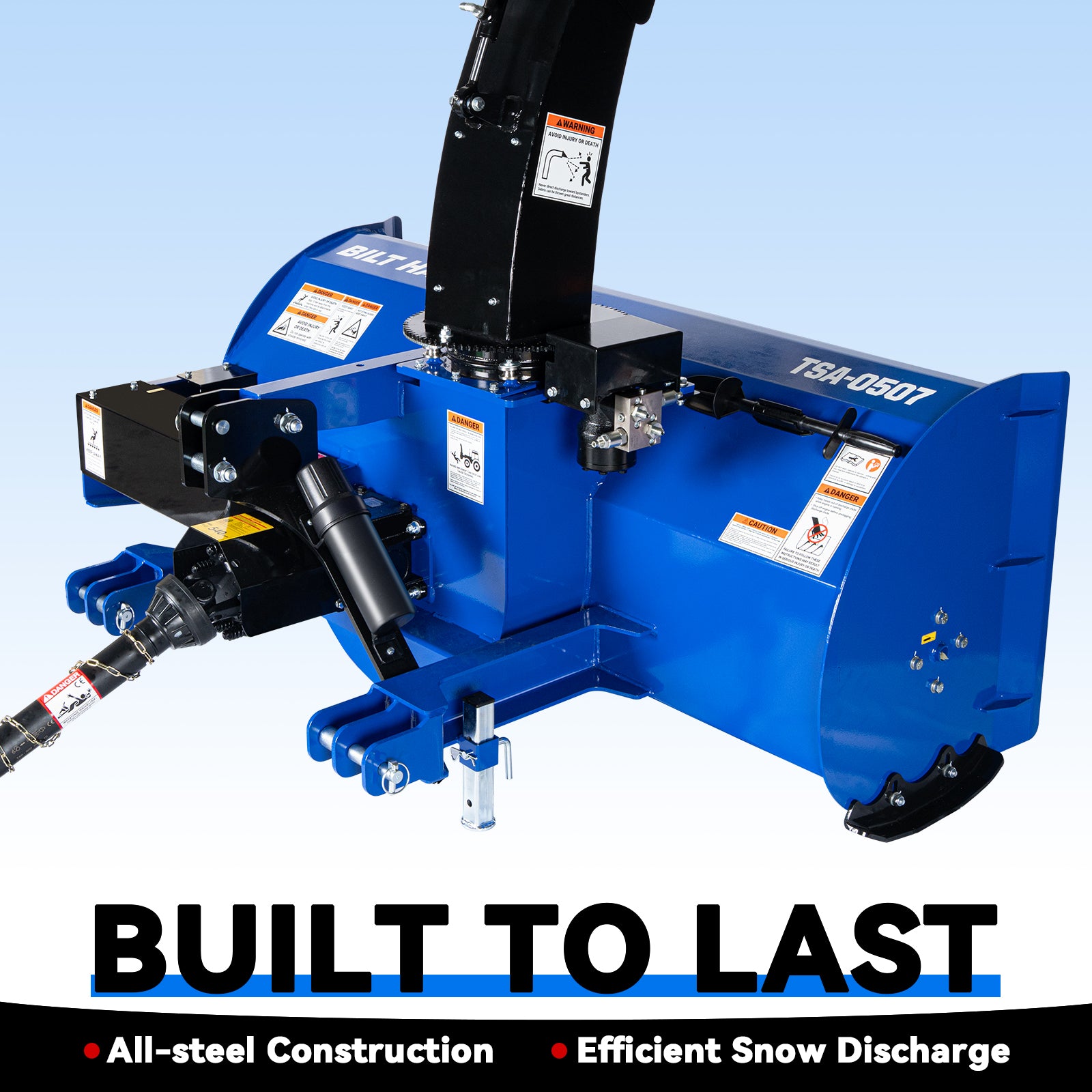 BILT HARD 72'' Tractor PTO Snow Blower with Hydraulic Chute Rotator, 3 Point PTO Snow Blower with 27" Cut Height, 17.5" Auger, 25-90 HP Compatible for Larger Properties