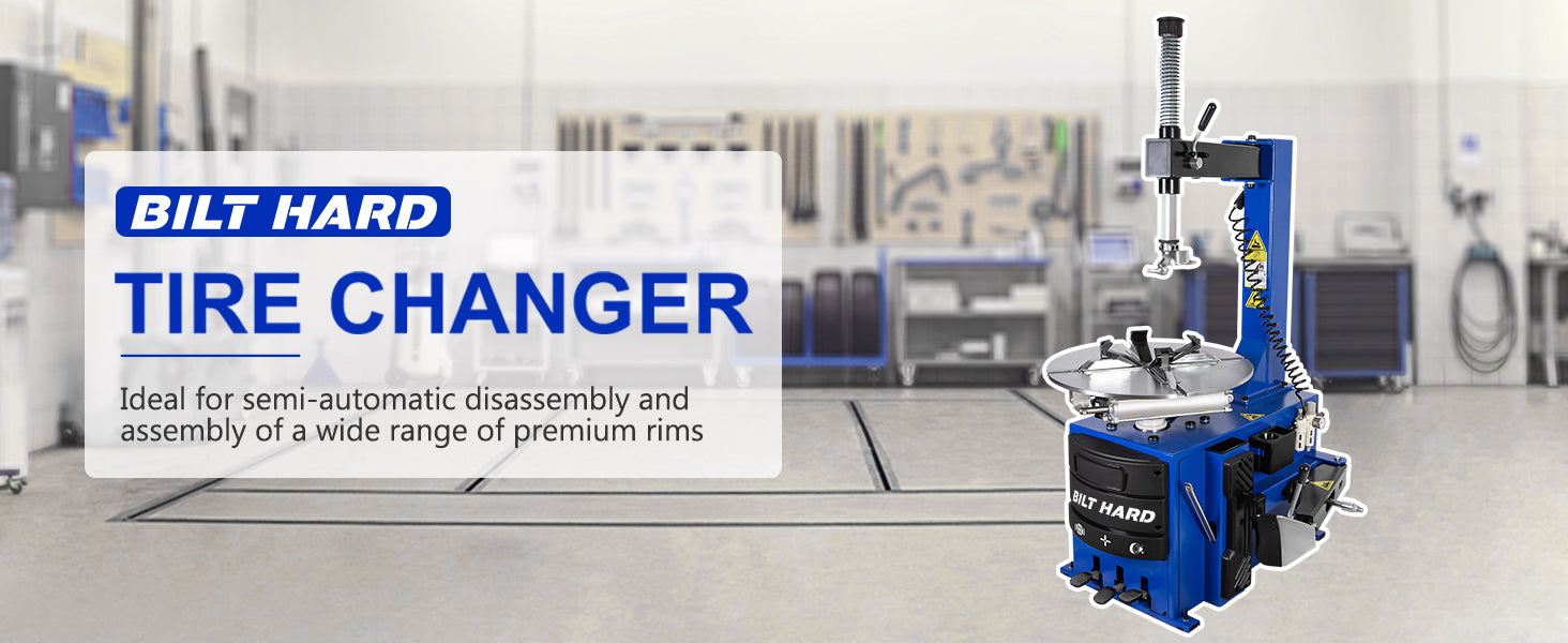 • The Bilt Hard Tire Changer is a dependable, entry-level machine engineered to simplify tire and wheel servicing for professionals and DIYers alike. Designed with durability and efficiency in mind, this unit is perfect for small auto repair shops, mobile tire services, roadside vendors, car enthusiasts, and home garages.