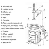 Built for longevity and precision, the foot pedal delivers smooth, responsive control over tire mounting and demounting operations. Its rugged construction withstands heavy daily use, while the ergonomic design ensures accurate, hands-free operation—enhancing workflow efficiency and operator safety in any shop environment.
